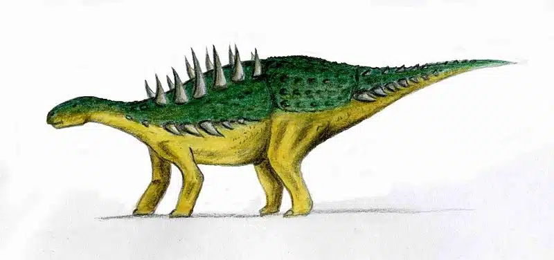 The name means “many thorns” or “many spikes,” reflecting the dinosaur’s heavily armored body.